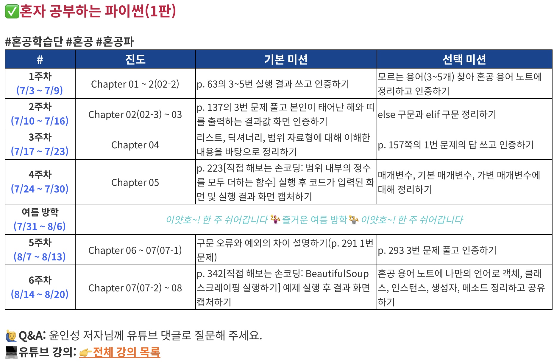 [혼공파] 혼공학습단10기 시작!(목차 및 과제)AI/혼공학습단10기_Python 2023. 6. 27. 09:26