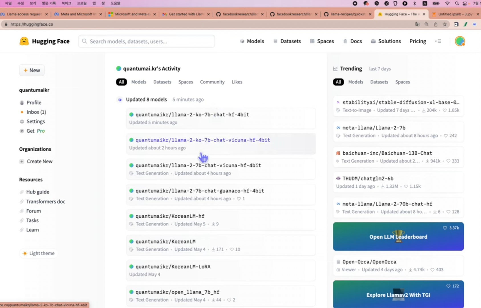 # 저자의 한국어 fine-tuning model 참조