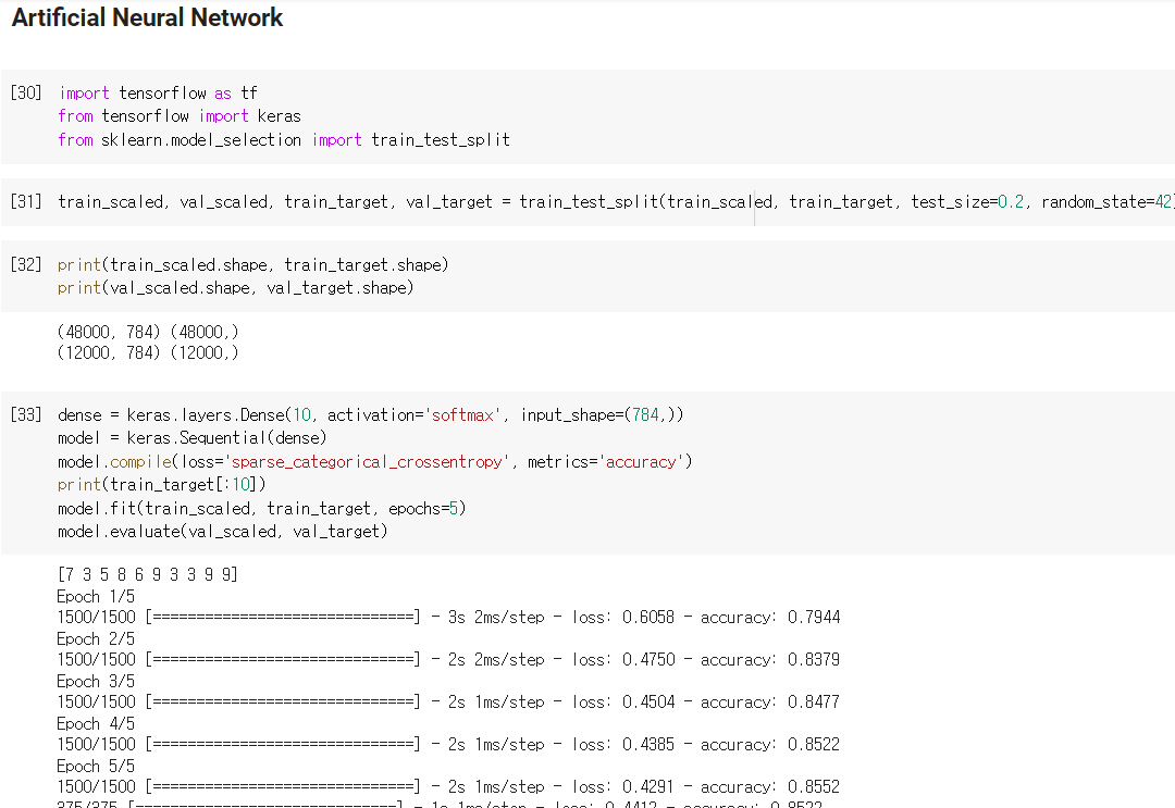 - 클래스 레이블이 정수일 경우 "sparse_categorical_crossentropy"로 지정함.
